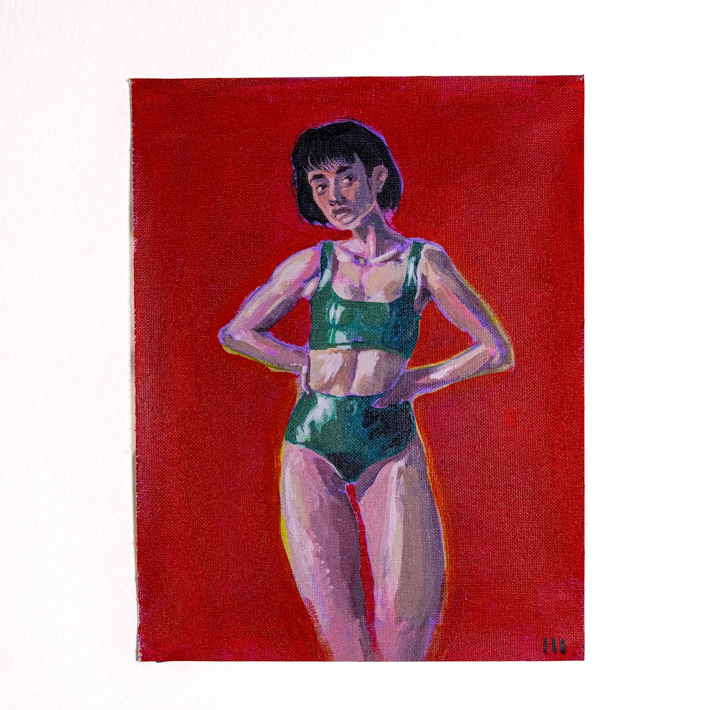8.5" x 11" acrylic paint on primed, un-stretched 8oz canvas.